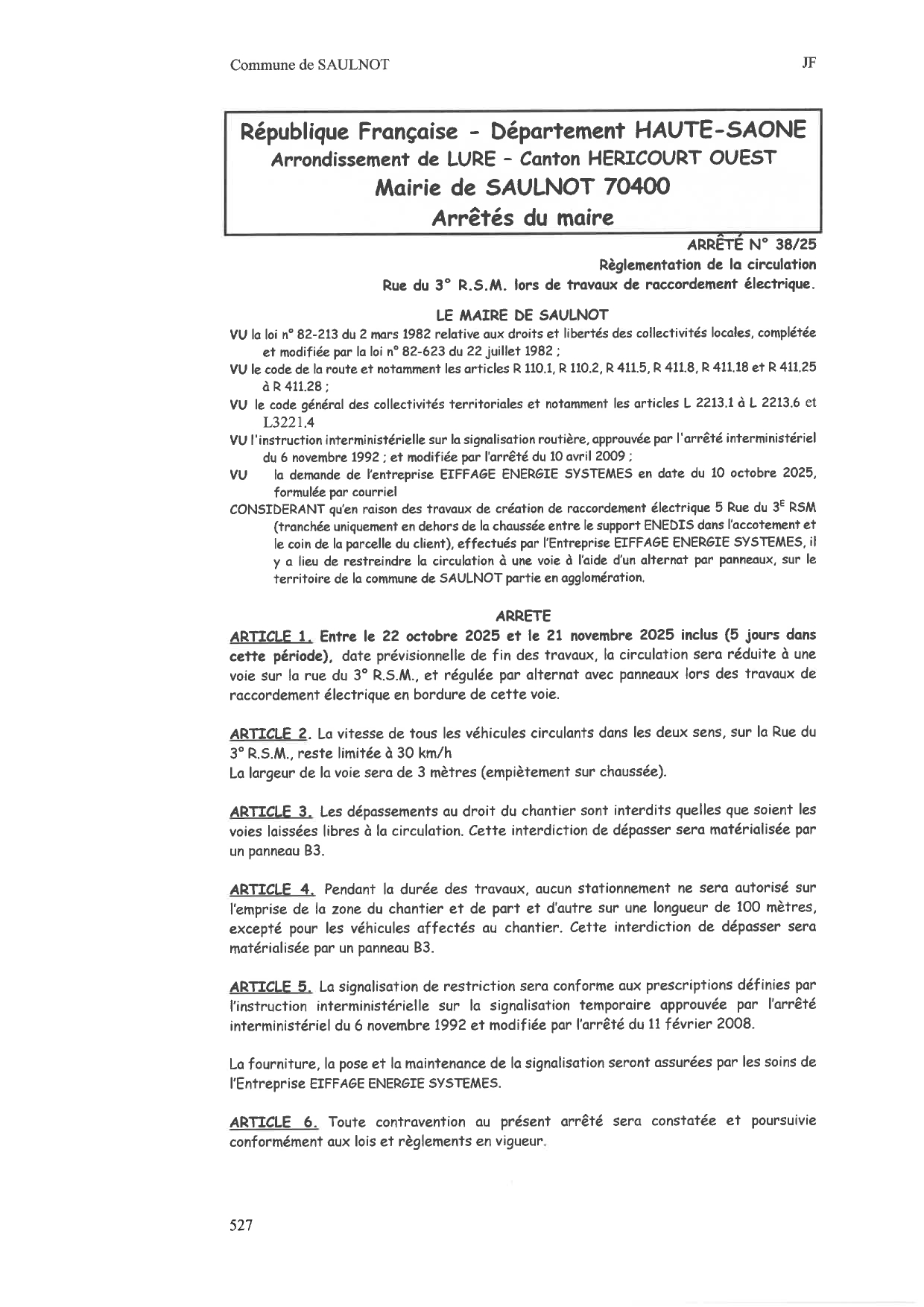 ARRÊTÉ N°2025_DIR-Est_B70-030 : portant arrêté particulier pour la réglementation de la circulation au droit d’un « chantier non courant » sur le réseau routier national, hors agglomération