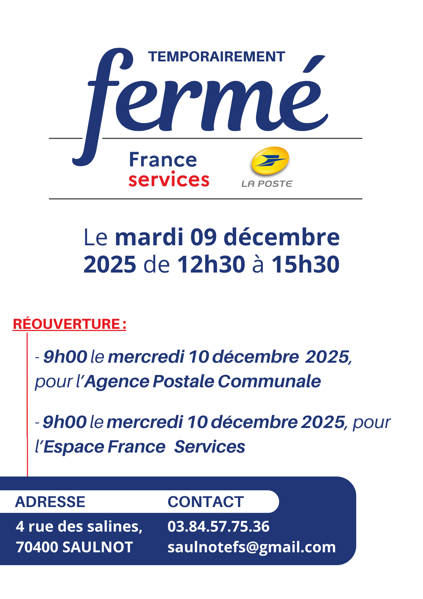 Pour rappel, l’assistante sociale de la MDPH intervient tous les deuxièmes vendredis du mois à l’Espace France Services de Saulnot, dans le cadre de la Communauté 360 !