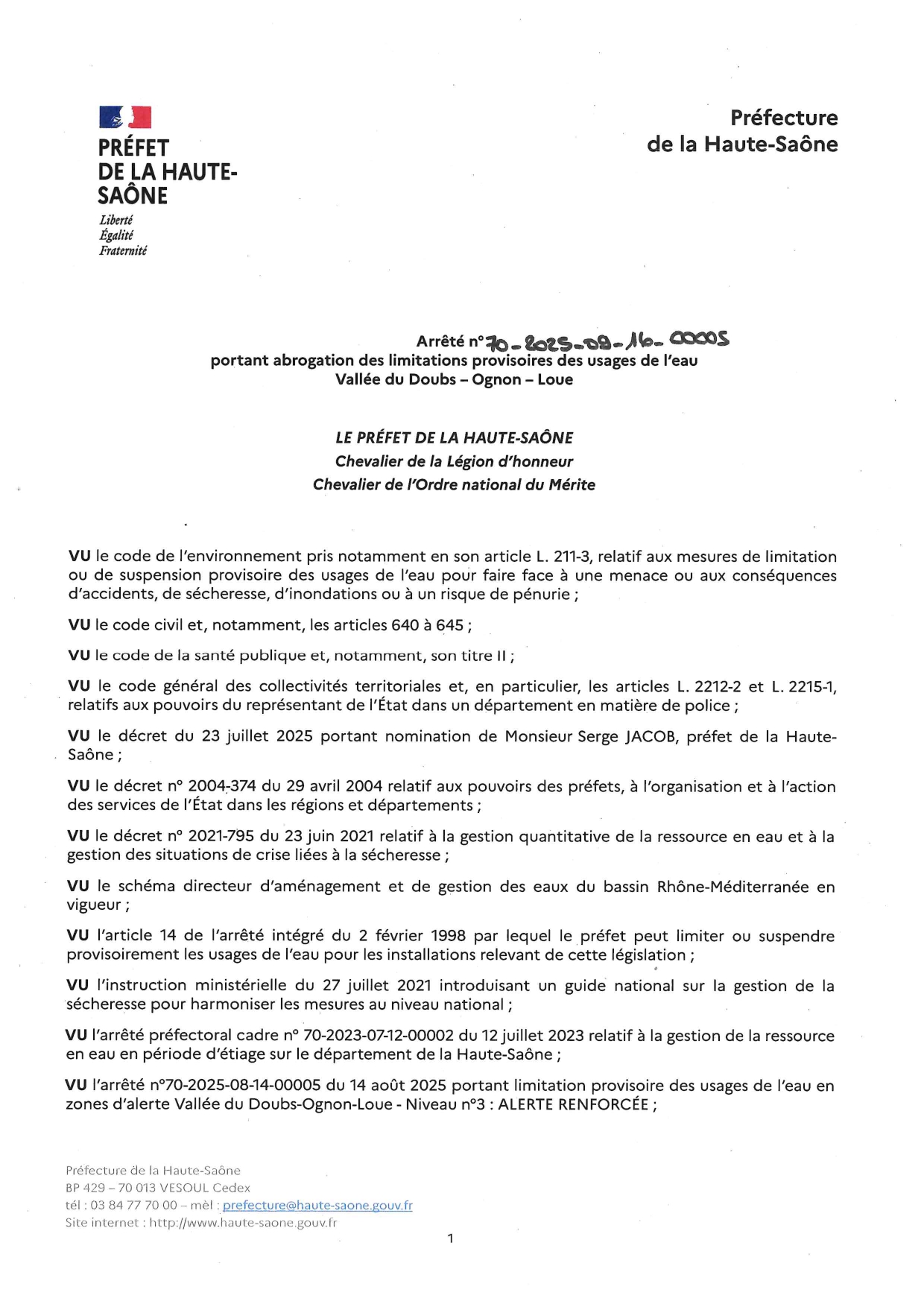 ALERTE-SECHERESSE : Département de Haute-Saône !